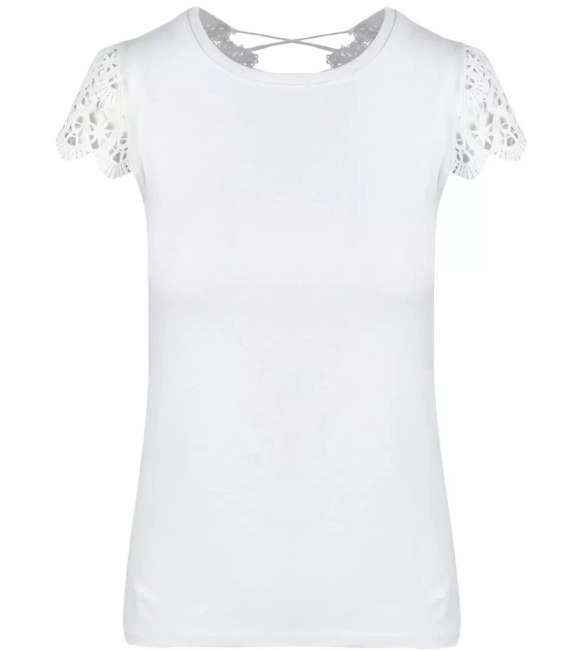 Bluzka koszulka krótki rękaw koronka IRMA (Biały)