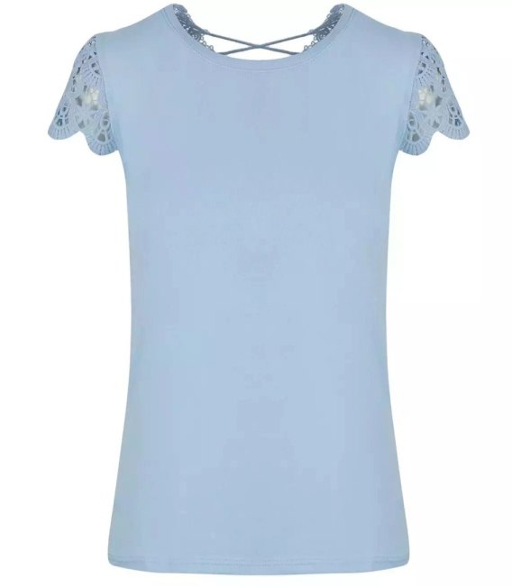 Bluzka koszulka krótki rękaw koronka IRMA (Niebieski)