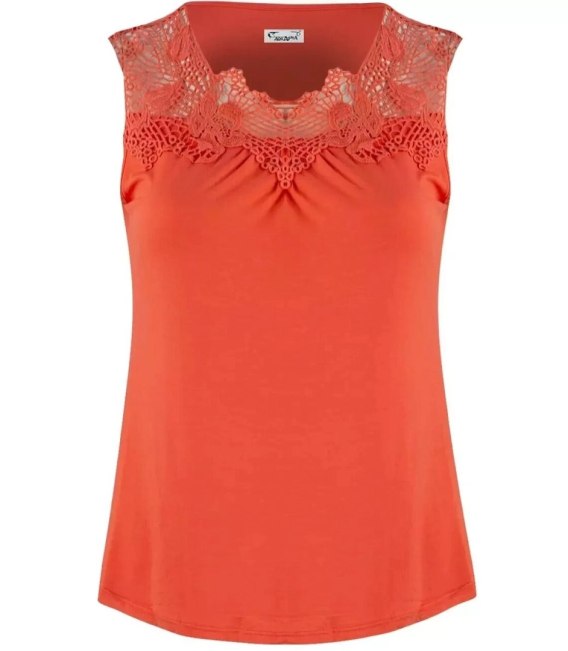 Piękny top bez rękawów z ozdobą koronką przy dekolcie