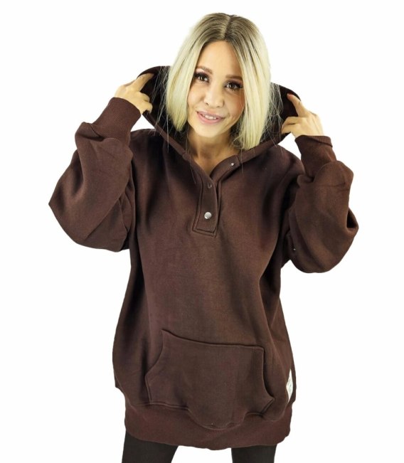 Ciepła gładka bluza oversize kaptur JANET (Brązowy)