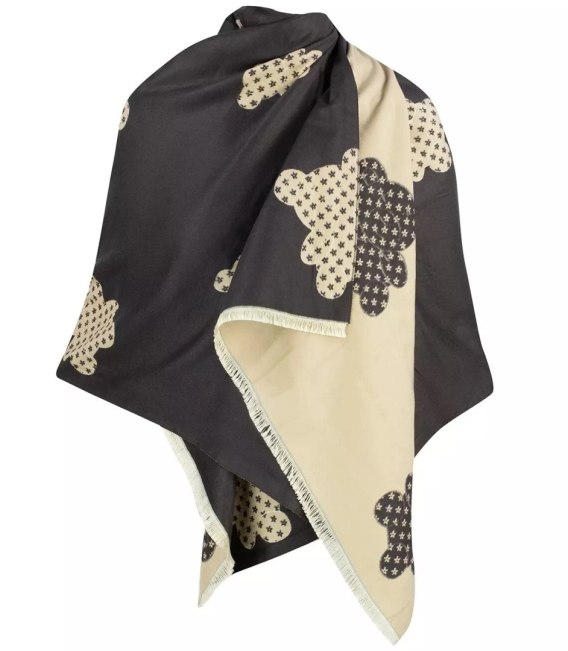 Stylowy nadruk w modne misie, pięknie wykończona frędzelkami