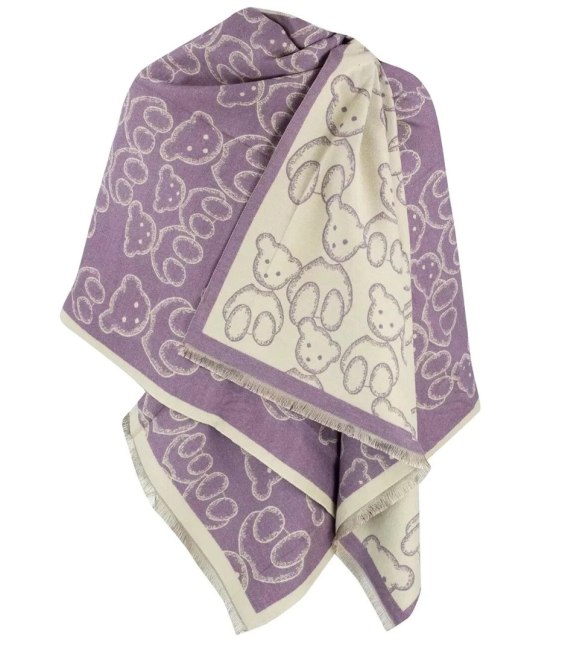 Ciepły szal szalik dwustronny misie dzianina (Fioletowy)