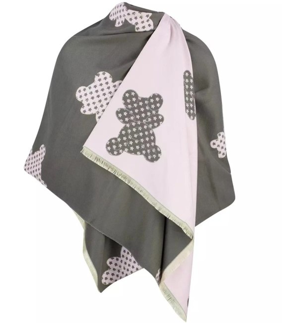 Ciepły szal szalik dwustronny misie dzianina (Szary || Różowy)