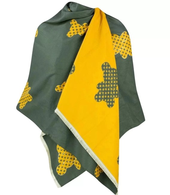 Ciepły szal szalik dwustronny misie dzianina (Zielony || Żółty)