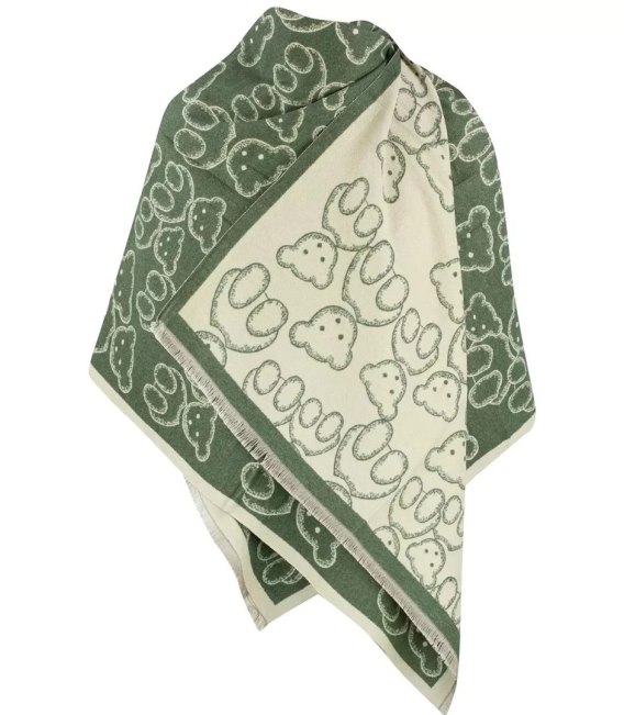 Ciepły szal szalik dwustronny misie dzianina (Zielony)