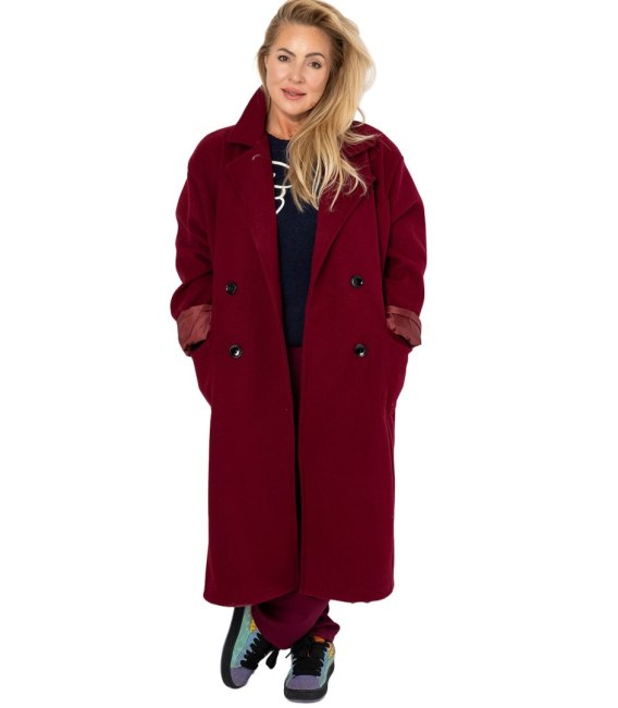 Damski długi luźny płaszcz oversizowy CINDY (Czerwony)