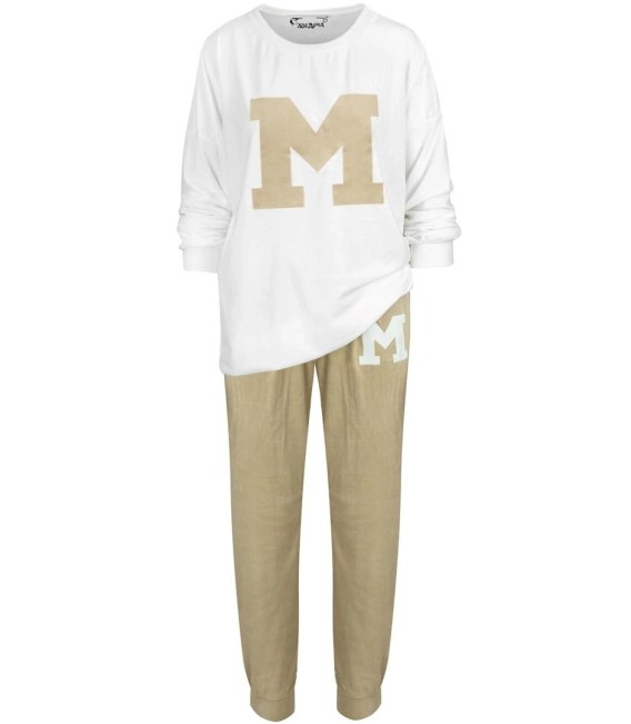 Damski komplet dresowy welurowy Ciepły Nadruk M MIA (Biały || Beżowy)