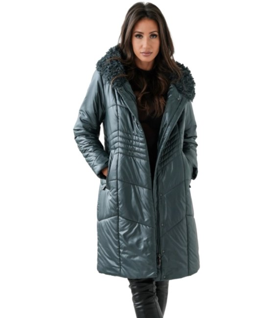 Długi elegancki pikowany płaszcz damski zimowy ocieplany MARIA (Zielony)
