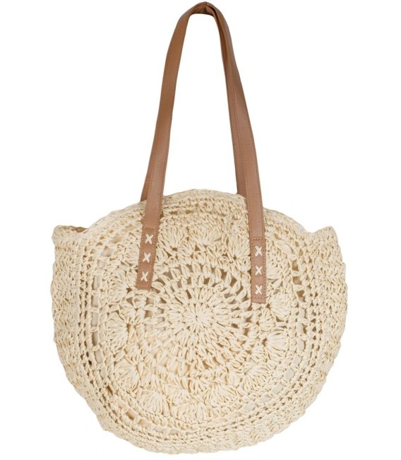 Duża okrągła torba plażowa słomkowa pleciona z ażurowym wzorem (Beżowy)