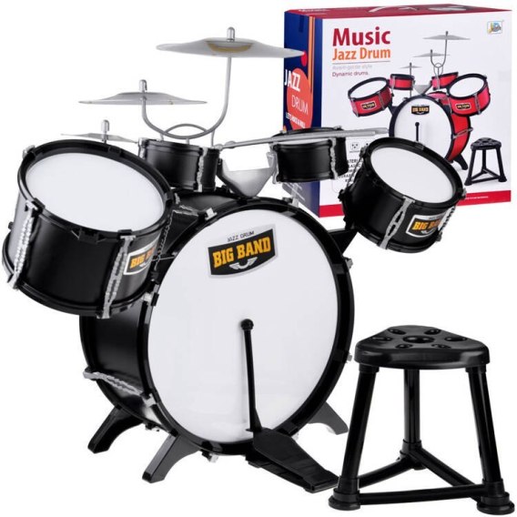 Duża pięciobębnowa perkusja to świetna propozycja dla małego rockmena. Zestaw perkusji zawiera pięć bębnów, trzy talerze, dwie pałeczki oraz krzesełko dla małego muzyka. Fajny pomysł dla muzyka, który uwielbia grać na czym popadnie. Realistyczna perkusja na pewno zaspokoi wymagania młodego muzyka, a kolorystyka przypadnie do jego gustu. Całość została wykonana z plastiku z dbałością o każdy detal przez co wygląda bardzo realistycznie. Talerze są wykonane z aluminium dzięki czemu możemy uzyskać bardziej realistyczny dźwięk. Perkusja pomoże dziecku rozwinąć zdolności muzyczne, wyczucie rytmu oraz pozytywnie spożytkować energię.