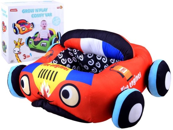 Komfortowy, wygodny pierwszy fotelik dla maluszka. Grafika fotela jest odwzorowana z wozu straży pożarnej. Fotel posiada doczepiane miękkie koła, aby dodać charakteru pojazdowi. Miękki fotel posiada szerokie boczne oparcia, stabilne oparcie dla pleców dziecka, boki i przód fotela są miłe w dotyku. Przy jakimkolwiek zabrudzeniu wystarczy go przemyć szmatką z wodą. Stabilny fotelik dla maluszka może być pierwszym oparciem gdy maluszek zaczyna przygodę z siadaniem.
