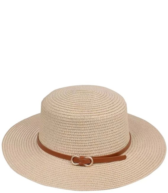 Kapelusz słomkowy damski z rafii z paskiem klasyka (Beżowy)