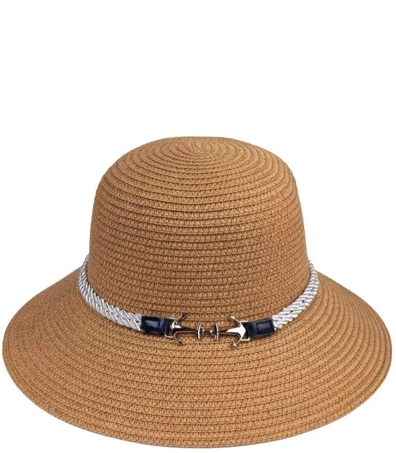 Kapelusz słomkowy z rafii z kotwicami na sznurku (Brązowy)