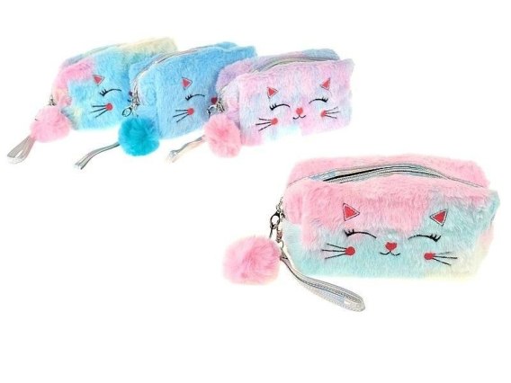 Kosmetyczka pluszowa z pomponem 18x11x7cm MIX