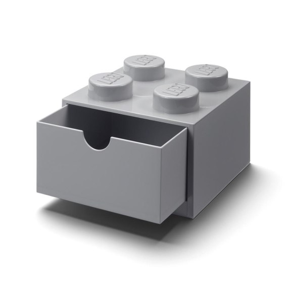 Pojemnik z szufladą na biurko w kształcie klocka LEGO(R) "czwórka" w kolorze jasnoszarym.