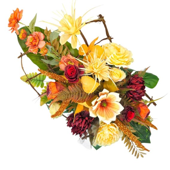 - ✅Realistyczne i naturalne kwiaty: Nasz stroik zawiera unikalną kompozycję kwiatów, które wyglądają naturalnie i realistycznie, dodając autentyczności oraz elegancji.