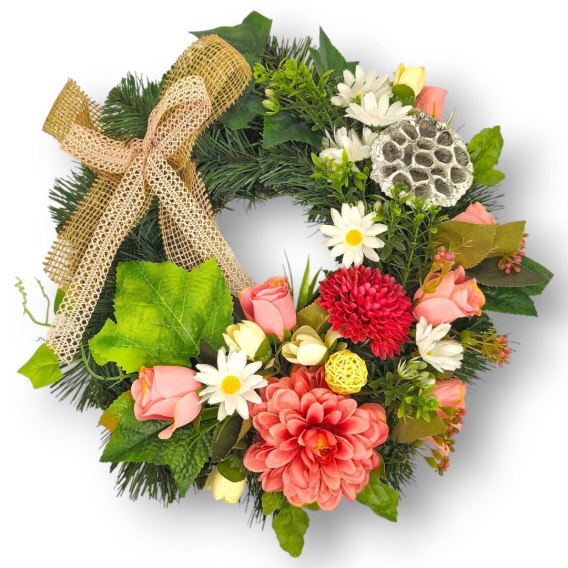 OKRĄGŁY WIANEK STROIK WIĄZANKA NA CMENTARZ DEKORACJA POD ZNICZ