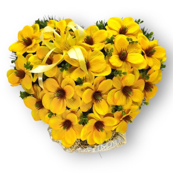 STROIK NA POMNIK SERCE XL KOMPOZYCJA KWIATOWA NA GRÓB ZÓŁTE MAGNOLIE