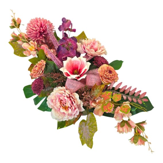 • Realistyczne i naturalne kwiaty: Nasz stroik zawiera unikalną kompozycję kwiatów, które wyglądają naturalnie i realistycznie, dodając autentyczności oraz elegancji.