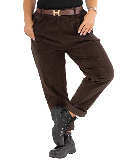 Sztruksowe spodnie chinosy z paskiem CITY SOFT (Brązowy)