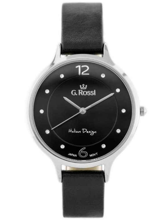 Zegarek damski G. ROSSI 10411A-1A1 to elegancka propozycja na co dzień, która łączy subtelną kobiecość z wyjątkowym stylem. Z czarnym paskiem ze skóry, kopertą w srebrnym odcieniu i czarną tarczą, prezentuje się bardzo szykownie. Indeksy na tarczy to delikatne kryształki, które dodają mu blasku i finezji. Zegarek posiada wodoodporność na poziomie WR30, co zapewnia komfort użytkowania w codziennych sytuacjach. Idealny wybór dla kobiet ceniących elegancję, ale szukających także praktyczności w swoich dodatkach.
